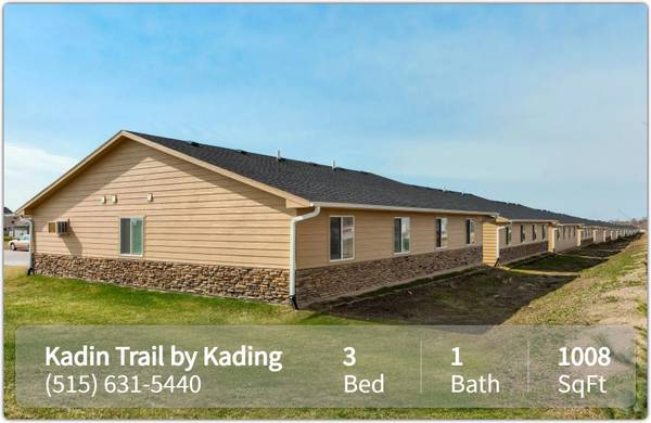 Did you know you could lease a ranch style townhome for about the same cost as renting an apartment? The conveniences of an apartment with the enjoyment of your own front door, yard and attached garage. Upgrade your apartment experience to townhome living with Kading!