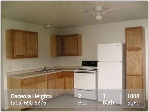 Experience Osceola living at Osceola Heights. This community is located on Primrose Ln in the 50213 area of Osceola. Let the knowledgeable leasing staff show you everything this community has in store. Drop by the leasing office to learn more about our community and find your new home at Osceola Heights.