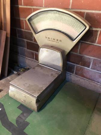 The Triner Imperial is from the 1950's. Still works but don't know the accuracy of it. Needs some cleaning. It is 31 inches tall, 28 inches wide and the platform is 13 inches by 18 inches.
