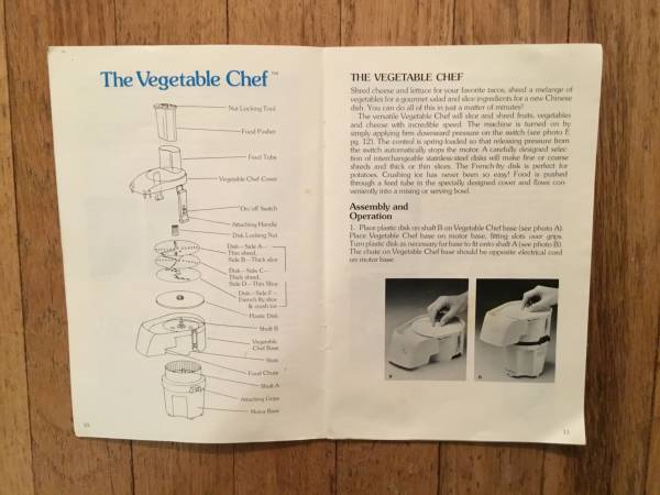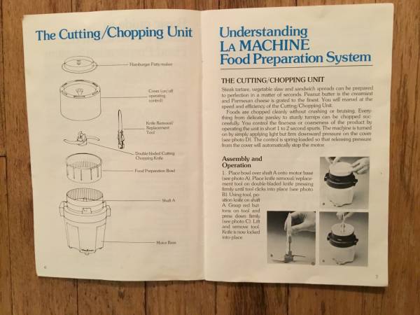 La Machine food preparation system by Moulinez Cutting Copper Unit - complete and working. Spring loaded so only light pressure needed to start and stop the knife. Vegetable Chef - complete but were...
