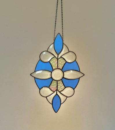 Beautiful hanging stained glass window piece. The glass is 17” long by 11” wide. It is meant to be hung in a window. In this picture, it is hanging on a wall (which doesn’t do its beauty justice!) Excellent, like new condition. Smoke and pet-free home. $25. Cash only.