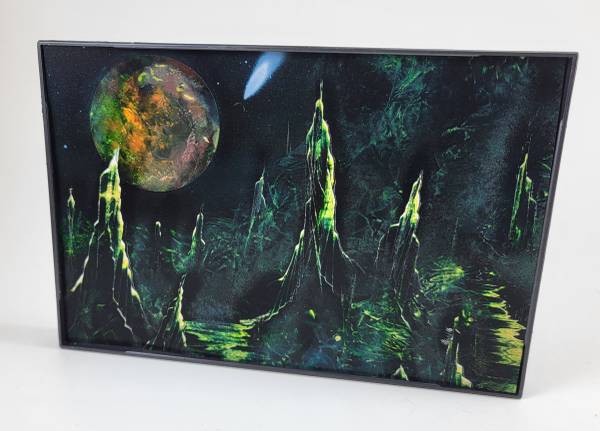 Fantasy Art Prints for sale with each Art Print being a 4x6 in size and comes with a black plastic top loading frame with real glass that can be displayed standing with included easel or can be hung on the wall. Instructions included. List price is for one frame and one print but if you want multiple just message me. Last two images are the back of frame positioned both horizontally and vertically.