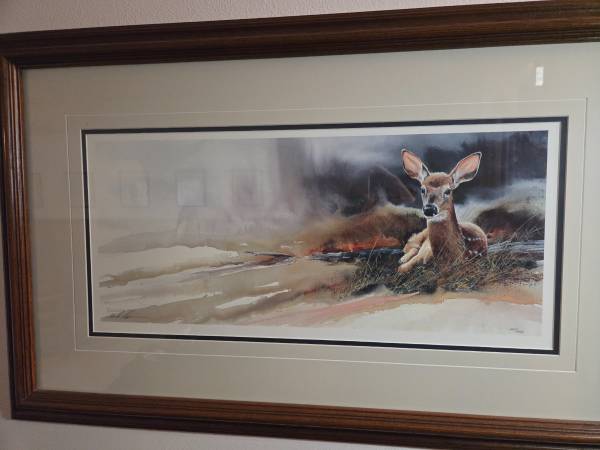 3 wildlife prints signed by watercolor artist Mike Casper, including "Down the Lane" and "Silent Flight" and a deer.