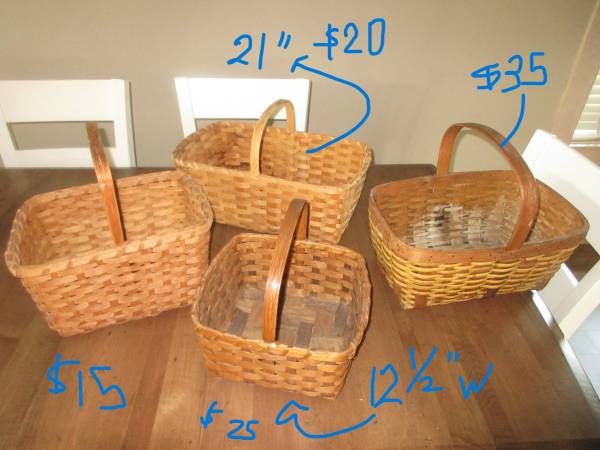 I have old baskets for sale - handmade - of course. THESE are NOT Longaberger - or newer baskets - these I have had for along time - and I paid a lot for these. I do have Longaberger in another listing as well.