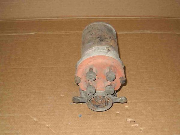 I have for sale a SIMMS 4 cylinder magneto. This brand of magneto was found in a number of different vehicle types. I cannot make out anything other than "SIMMS", so I really can't say what specific application this magneto was used for originally. This also includes the remains of the plug wires. The piece with the bars sticking out does rotate left and right. The shaft thru the magneto is stuck, although I do not know how tight as I only tried turning it with my hands.
