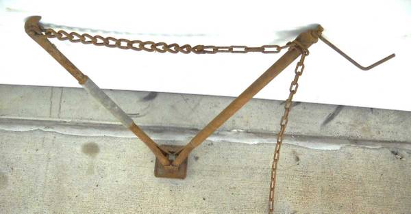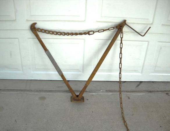 I have for sale a vintage "Triangle" jack. It appears to be complete and in pretty decent shape. The only bad thing(for collectability anyway) that I see is that someone appears to have welded a piece of pipe in the center of one bar. I am not sure if this was to repair damage or to lengthen that bar. The bars are approximately 30" long to give you an idea of the size.