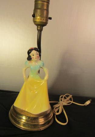 Vintage Snow White Lamp, measures 12" x 5.25" diameter. The Snow White figure measures: 6.75" tall. Works as it should, has some wear on the base of the lamp, please review photos. Price is $40.00 cash, pick up in Carroll. I do travel to the Grimes & Ankeny areas.