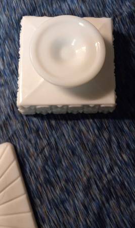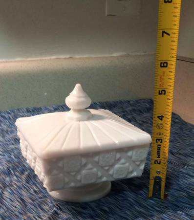 A Westmoreland milk glass covered dish in the "old quilt" pattern