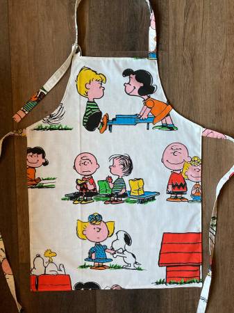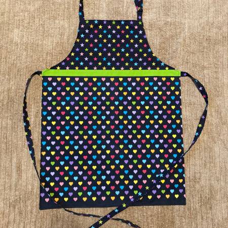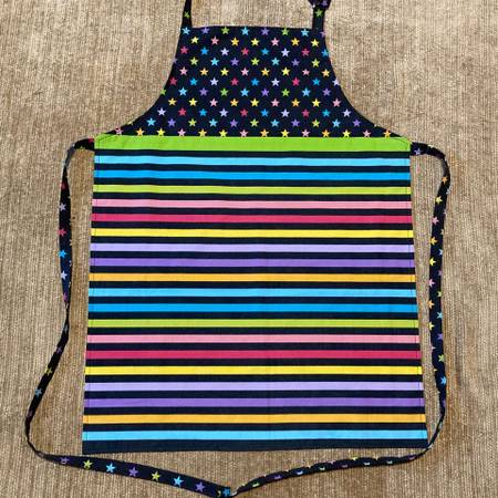 Handmade child size aprons, made (recycled) from vintage fabrics and/or shirts. (no two will be the same). They are completely lined, have and adjustable neck strap and tie in the back.