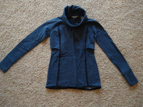 I have an adult size XXS blue Athleta long sleeve pullover for sale. It fits like a Youth XL - daughter wore around age 10 - 12. It has dark navy trim, a front pouch pocket, brushed fleece interior and back breathable panel. In like new condition and from a smoke free home.