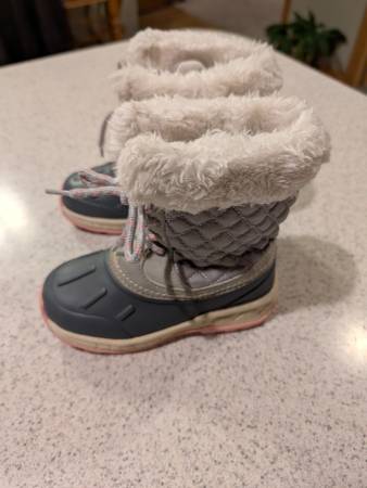 Girls Carter's gray and pink size 11 snow boots. These boots were only worn a couple of times so they're in very good condition! From a smoke free home.
