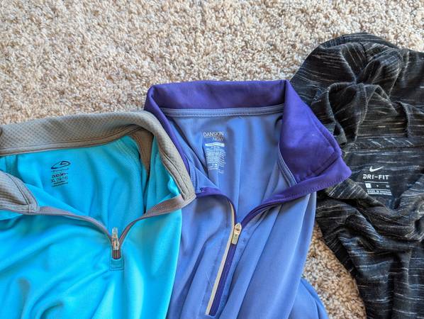 *C9 teal quarter zip size Youth XL *Danskin blue quarter zip size semi fitted 8/10 *Nike heathered black lightweight hoodie shirt size Small $5 each