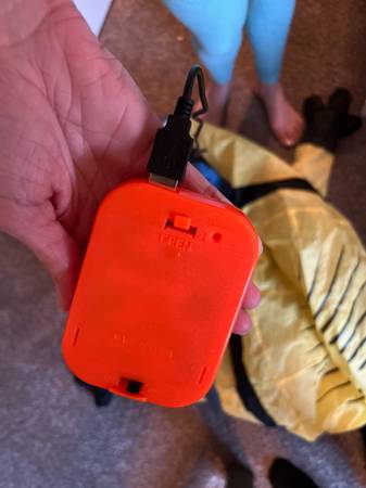 Lightly used. Everything works. Takes 4 AA batteries. My child outgrew this and so we no longer need it.