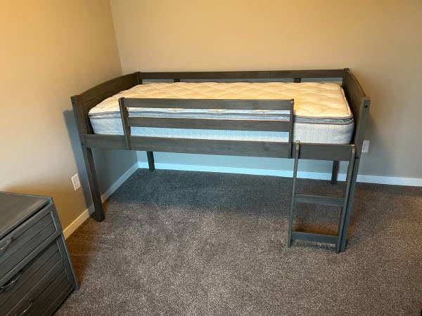 I’m moving next month, and my child has outgrown this bed, so I am selling as-is on a first-come, first-serve basis. Mattress is included. One of the drawers is a bit broken and doesn't close all the way.