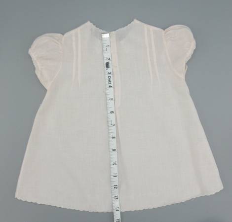 This is a vintage infant brand girl’s dress from the 1950’s. It is tagged, “Made in the Philippines”. The fabric content is cotton. There are several small marks on the dress; it is in otherwise excellent condition. Please view the photographs for documentation.