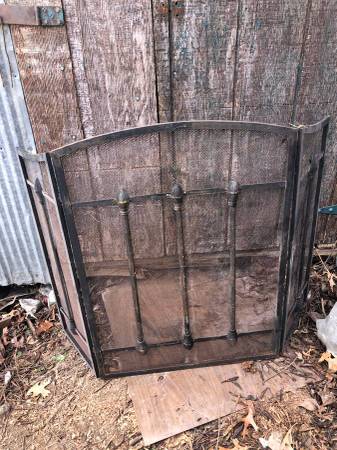 Fire place hearth screen, w/ poker and shovel, 32” x48” $25.00 Call or text Six4 one-7five7-11zero4 Or Trade