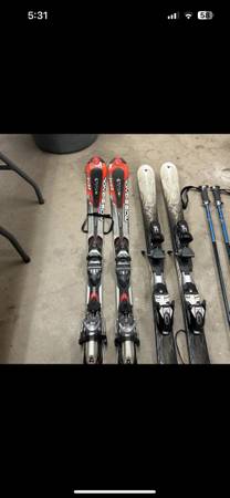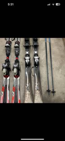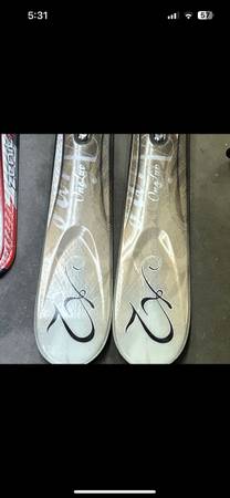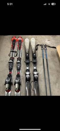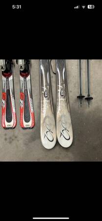 First pair of skis are a pair of K2 One Luv women’s skis T:9 series.
