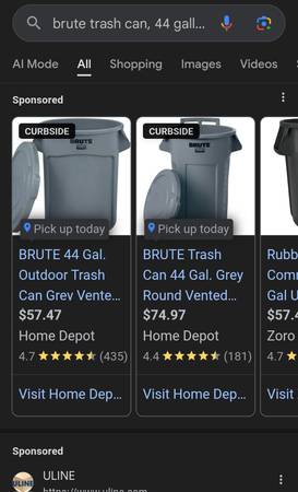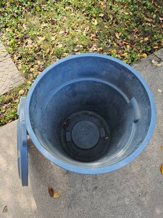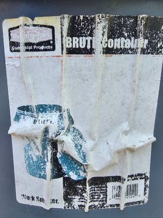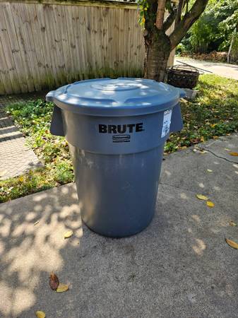 44 Gal Brute trash container. Personal home use only, still in great shape. Lid snaps down and stays on. Moved and not using it anymore.