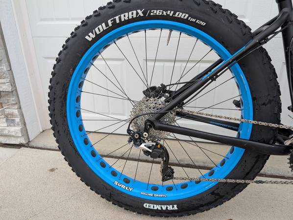 One owner Salsa Beargrease 26"x4" Fatbike Medium size, aluminum frame/fork. Shimano 2x10 drivetrain, hydraulic brakes. In decent condition. New tires.