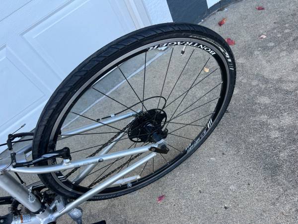 Pair of his and hers Trek 7500 bicycles. Just like new bikes that we purchased new when this model was available for a couple trips we went on with friends and have no more than 25 miles on them. One is 15 inch and the other is 17.5 inch frames. Color is Matte Steel Gray/Matte Brushed. Everything works as it should and the tires are excellent. Been stored inside and heated garage. Would like to sell as a pair but will consider selling individually. Asking $475 for the pair or OBO. Would make great Christmas gifts and a lot cheaper than new.