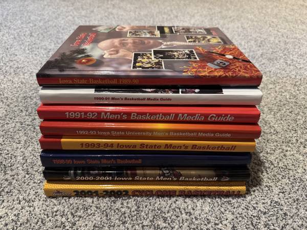 For sale are eight (8) Iowa State Menβs Basketball media guides! These hardcover books are all in great condition, and they are the perfect addition to any Cyclone Fan Cave. Seasons represented are:...