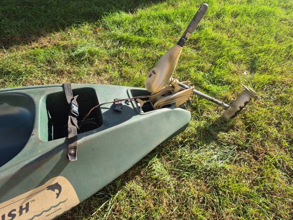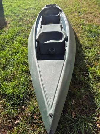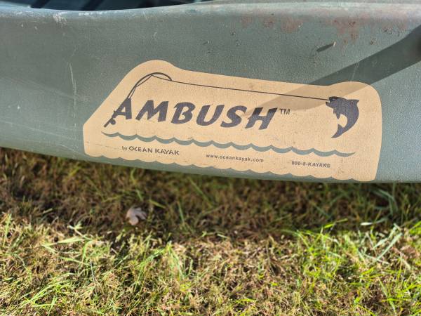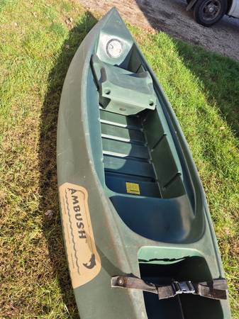 Ambush kayak , 14 ft long, 44" wide, 800 lb. Capacity, 100 lbs. floor is 8' 2" long . Great for fishing or hunting, has a adjustable and removable 2nd seat, bring the dogs. Contains a sealed hatch, rod holders, scupper holes with plugs, built in battery box, and a transom for a motor. Extremely stable, made to stand in and can be paddled or used with a trolling motor. Easy to transport and can be put on the roof of your vehicle.