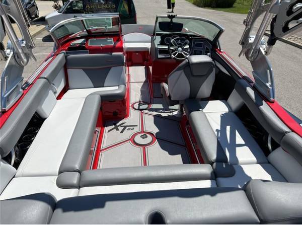 2019 Mastercraft XT 22. 380 hours. Very well maintained. 16 seating capacity. Pickle fork bow. ZFT4 tower. Gen2 surf system with S2S switching. Klipsch Audio Speakers. Extra large bags in the rear lockers. Great surf wave. Heater. LED interior and speaker lights. Under water light and docking lights. Interior is perfect. Bimini top. Lots of storage under the seats. Dual axle trailer. Stored under cover and lift canopy in the summer. Garage stored in the winter. All maintenance done by the Mastercraft dealership on our lake. Oil and fliter changed with every winterization. Only use marine grade, ethanol free boat fuel. Over tower boat cover. Selling for upgrade purposes only. See boat build sheet in the pictures. Located on Lake Panorama, Panora, Iowa