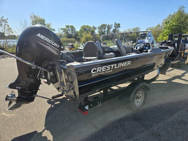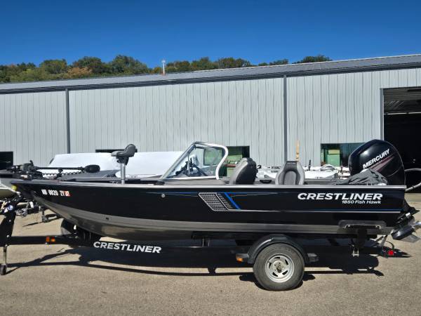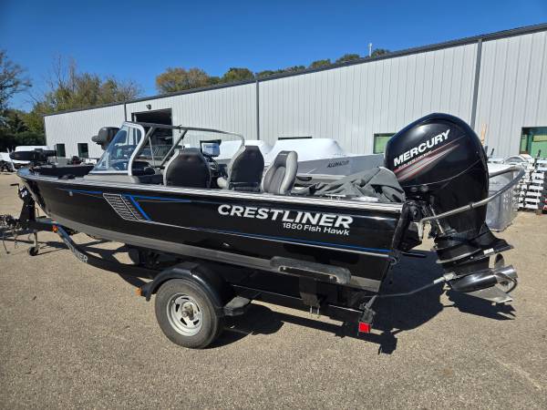 2017 Crestliner 1850 Fish Hawk powered by a fuel injected 150hp Mercury 4 stroke motor for only $29,995 plus tax! ONLY 251 HOURS ON THE MOTOR!! This package includes: - Shoreland'r bunk trailer -...