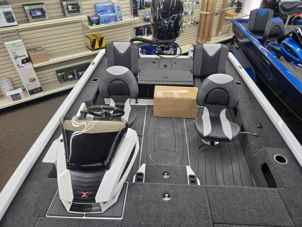 We ordered this boat without electronics so we can custom rig it with whatever you want! We handle MinnKota, Humminbird, Lowrance, and Garmin electronics.