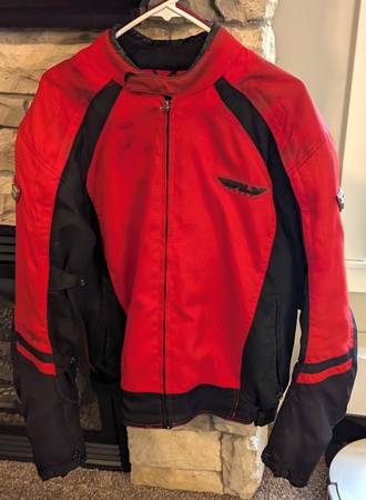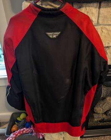 Fly Racing motorcycle jacket with full armor, removable inner liner, and adjustable sizing. Needs a good wash but in good condition. Great for warm or cold weather riding.