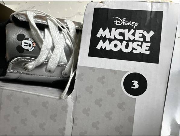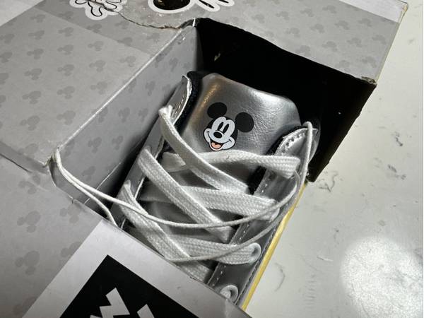Get ready for fall with these stylish Disney Mickey Mouse sneakers! The silver color and retro theme make them a perfect addition to any kid's wardrobe. They are designed with a metal cleat type and Disney branding, featuring the iconic Mickey Mouse Ears model.