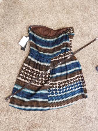 Strapless Top by As U Wish-Size large. Elastic back with built in bra. Comes with a brown belt. Tags still attached. Retailed for $40. Excellent Condition.