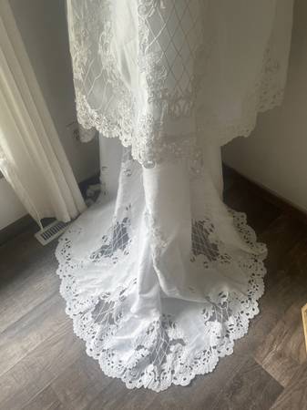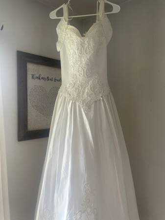 Size 10, Mary’s wedding dress. This came out of storage unit I won the other day. Doesn’t look like it’s been used little dust a couple spaces.