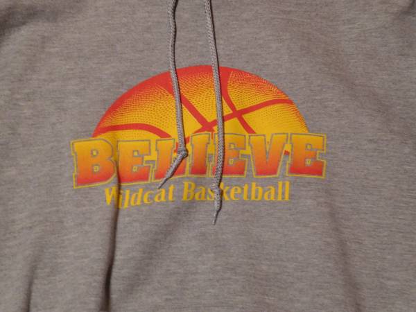 Gray Size Medium Hoodie that says "Believe Wildcat Basketball". Great Condition.