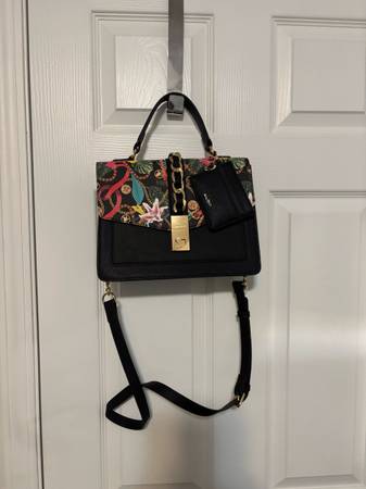 Aldo black floral crossbody bag with small coin-card pouch for sale//two way to carry // brand new,still with tags on it//$35