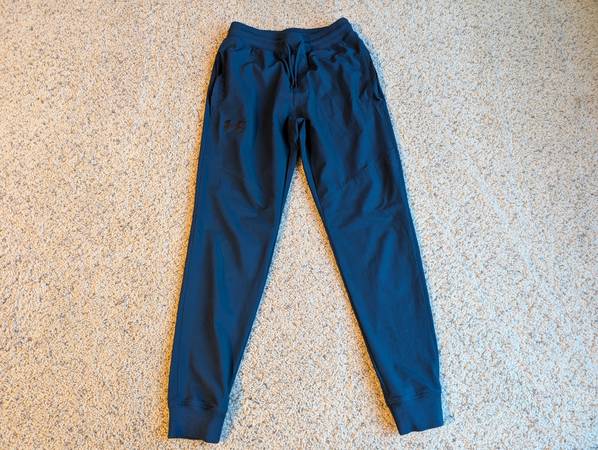 These are the Under Armour Unstoppable fitted joggers in navy. They are in like new condition as my son outgrew them quickly.