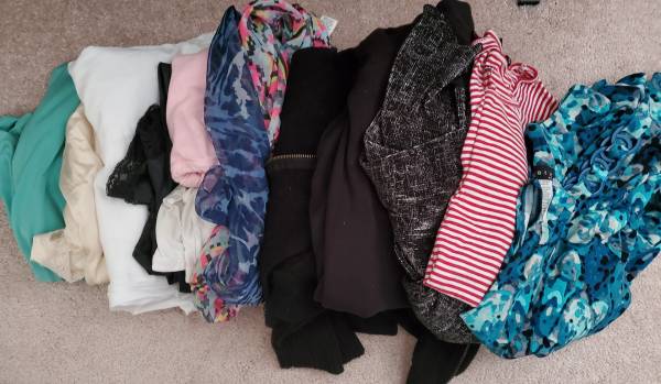 Women's 18-20-2X plus size tops, 21 items. 1 dress 3 slips 2 bras 2 scarves 13 tops