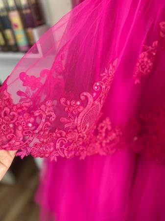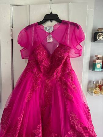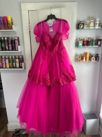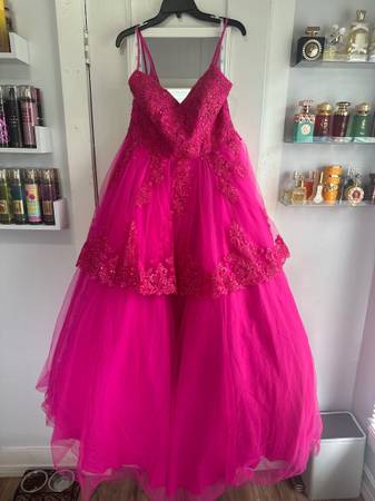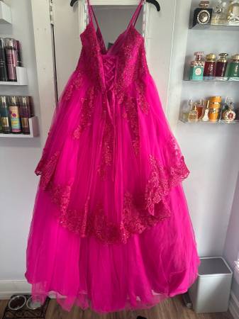 For sale beautiful dress!! Size 16!! Purchased new from David’s bridal worn for 2 hours only!! Great condition!! Hot pink in color!! Great dress for quinceañera, sweet 16 or even prom!! Lots of layers and bead work!!! Price lowered from $100 to $85.00 no scams if interested please call text or email!!! Don’t want to miss this great deal on a beautiful dress!!