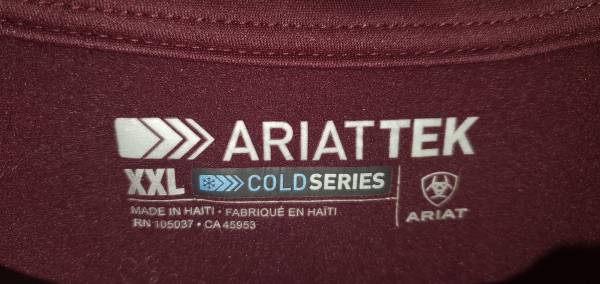 Ariat Ariattek cold series 1/4 zip sweatshirt like new, 2XL. Soft inside and out with fleece on the inside. Moisture movement to keep you dry. One black and one maroon available.