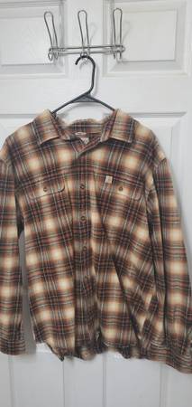 Brown/orange thicker button down XL Located in Perry, can meet when going to Ames or Grimes areas if that's more convenient.