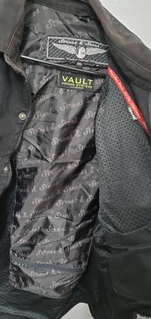 Street & steel vault armor systems motorcycle jacket. Size 2XL. Has protective armor for shoulders, elbows, and back. Fun patches. Button and zip closure. Located in Perry, can meet when going...