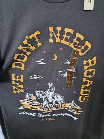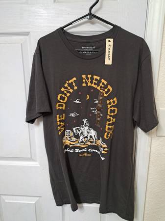 "We don't need roads" tshirt. Located in Perry, can meet up in Ames or Grimes.