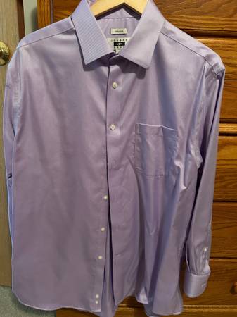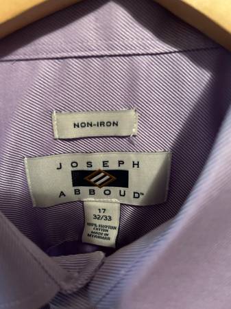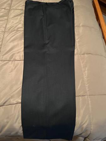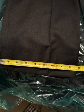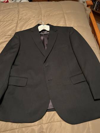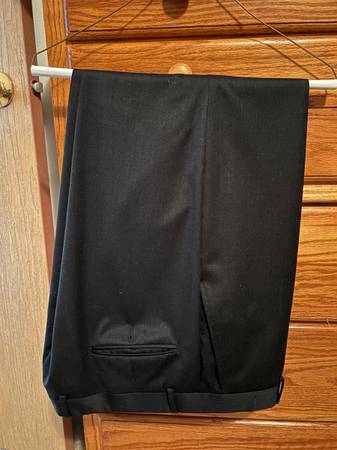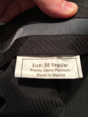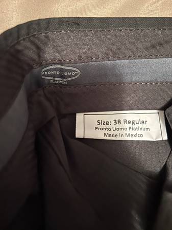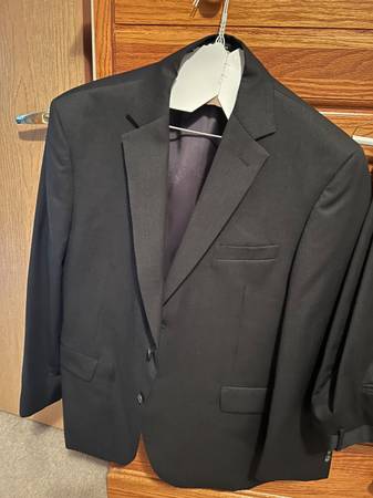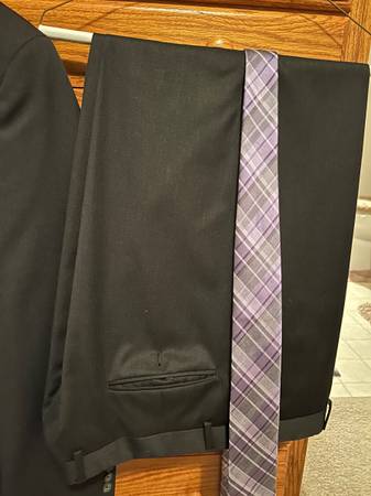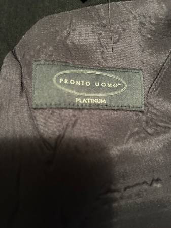 For sale is a men’s Pronto Uomo Platinum suit. It is black in color and is a 44R. The pants are are 38 regular. I am also including a lavender Joseph Abboud dress shirt and a lavender tie. The dress shirt is size 17 32/33. I bought the suit for my aunt;s funeral and wore it only that one time. I do not like the fit on myself. It has been dry cleaned and has been stored in a plastic bag. I paid $1100 for it at Men’s Wearhouse.
