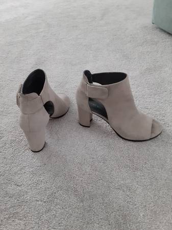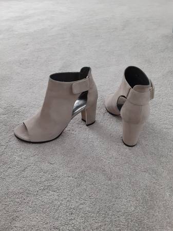 Womens suede Stuart Weitzman size 7.5 Med open toe suede ankle boots with leather soles 2 3/4" heel. Made in Spain Original price $495