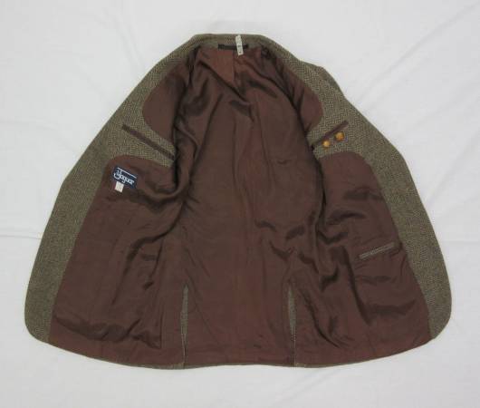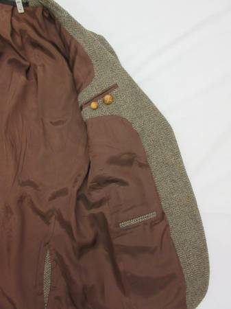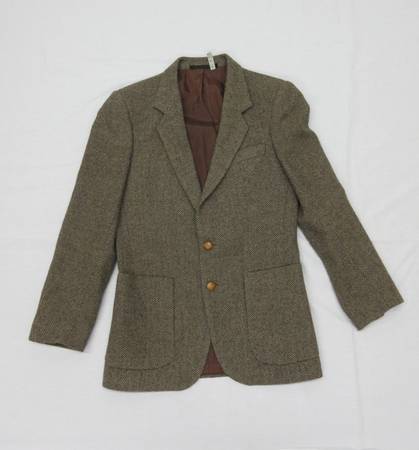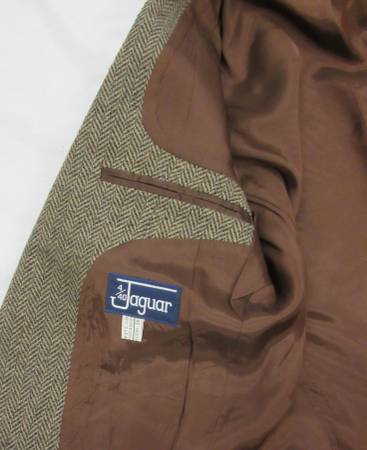 This vintage Jaguar tweed sport coat is like new. It is newly drycleaned (see the tag at the neck). It features suede elbow patches, two vents, extra buttons and is fully lined.