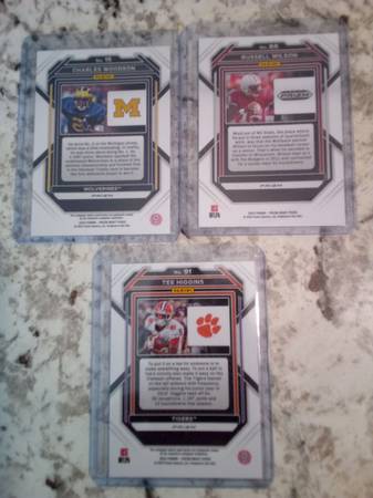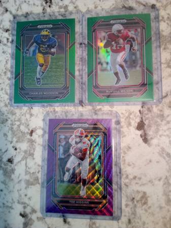 Hello. This is for 6 Mint!!' football 2023 prizm- "Prizms!' draft picks "parallel!!" "Prizms!" Cards. It shows on the back of the cards that these are prizm-"Prizm cards! Includes 3 prizm "Prizm!!" rookie cards!! Only $6!! Do not miss out on this!I live and pickup is in Ankeny,Iowa. With any questions feel free to email me! Please check out all of my 2023 football rookie cards and a lot more listings!! Thanks! Brian