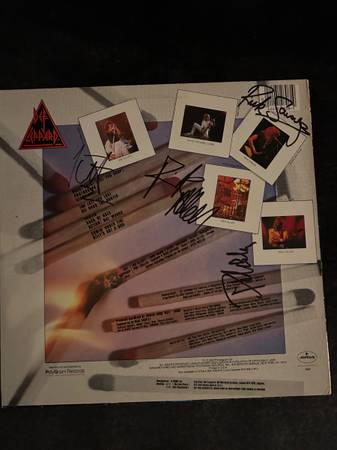 For sale is a signed Pyromania album cover by members of Def Leppard. It is signed on the back cover by Joe Elliott, Phil Collen, Rick Savage, Rick Allen. It is in excellent condition.
