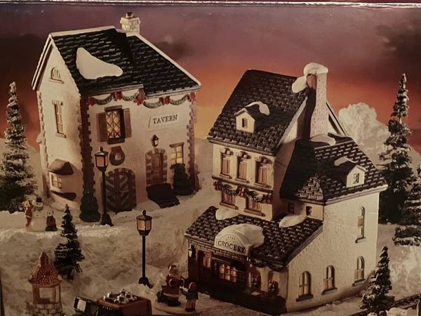 Two piece illuminated snowflake village. Includes Tavern and Grocery with box.