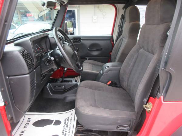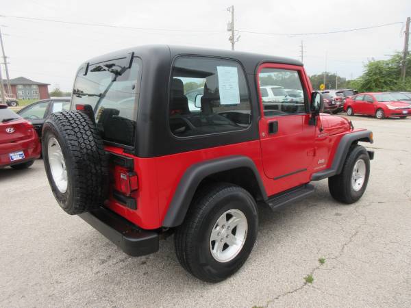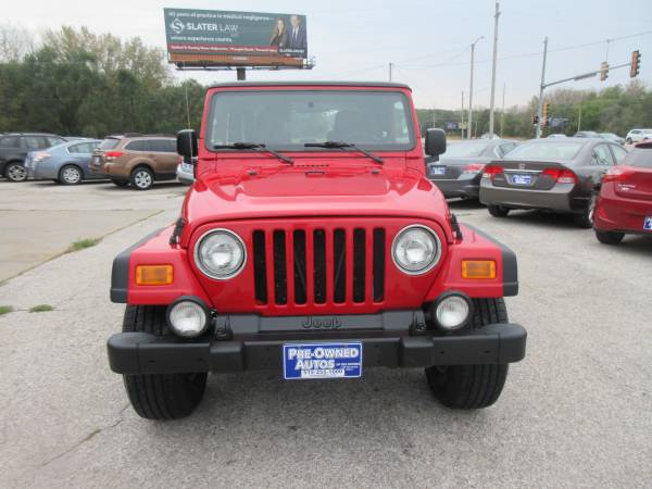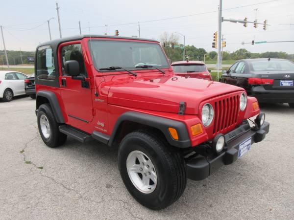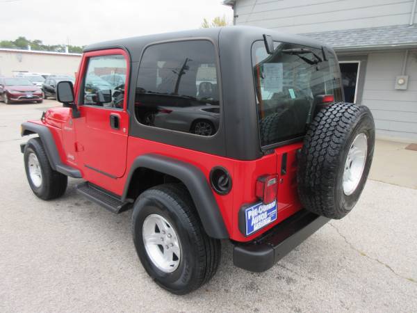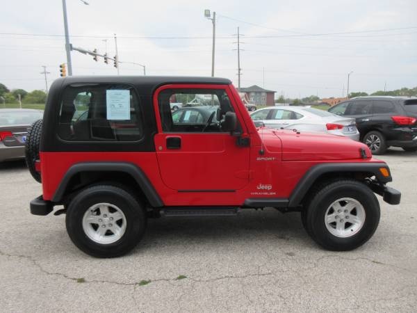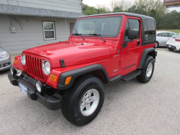 Just in is this 1 owner, super clean, 2004 Jeep Wrangler Sport 4WD in very nice condition. Features of this Wrangler include; 4.0L inline 6 cylinder with an automatic transmission, alloy wheels with brand new tires, cloth interior in super shape, premium sound with cd player, cruise control, ice cold a/c. This jeep comes with both the hardtop as shown in pictures and a soft top in great condition as well. This Wrangler looks, runs, and drives great. The frame is in great condition. Call or come in today.