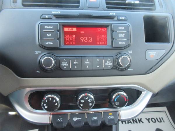 Just in is this 2 owner, low mileage, 2015 Kia Rio LX Hatchback Sedan in nice condition. Features of this Rio include; fuel efficient 1.6L 4 cylinder with an automatic transmission, great tires, cloth interior in super shape, power mirrors, manual windows and locks, premium sound with audio controls on steering wheel, Sirius XM equipped, aux & usb ports, and much more. This Rio runs and drives excellent. Call or come in today.